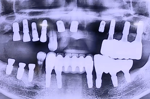 환자분은 이전 왼쪽에 임플란트를 진행하셨었고, 임플란트가 되지 않은 오른쪽 위아래 어금니와 위 앞니가 심하게 흔들거려서 거의 왼쪽으로만 식사를 하고 계시는 상태에서 내원해 주셨습니다. 때문에 오른쪽 위아래 어금니와 윗니 앞니를 임플란트를 통해서 단단히 하고 치아의 기능을 회복시켜드리는 방향으로 치료 계획을 세웠는데요. 불편한 치아들을 발치하고 임플란트를 단단히 심어드렸고, 임플란트는 굉장히 단단하게 잇몸뼈와 잘 결합되고 주변 뼈이식까지 잘 진행되었어요. 만약 심으려는 임플란트가 단단할 경우 당일에 바로 임시치아를 체결해 드리는데 환자분게서는 위 앞니 주변 잇몸뼈들이 약해서 즉시 임시치아 체결은 불가능했습니다. 따라서 위 앞니 임플란트를 잇몸 속으로 완전히 묻어두고 시간이 지나 스스로 굳게 하기로 하고 임시치아는 끼우고 빼는 타입으로 제작하여 드렸던 케이스입니다. |