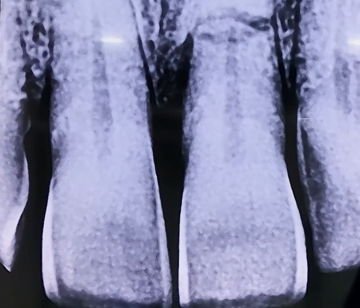 넘어져서 앞니가 손상된 상태로 내원해 주신 환자분이십니다. 갑자기 넘어지며 부딪쳐서 앞니에 극심한 통증을 호소하고 계셨는데요. 엑스레이 촬영을 해 보니 위 앞니 2개 치아의 잇몸 안쪽 뿌리 부분이 완전히 깨져 있었습니다. 만약 바깥쪽 치아 머리가 손상되었다면 보철치료로 복원해 드릴 수 있었을텐데 치아 뿌리가 부러졌기 때문에 자연 치아를 살리는 것이 불가능해 임플란트를 진행하였습니다. 부러진 앞니 2개를 발치한 후 당일 임플란트 식립과 임시치아 제작까지 해 드렸습니다. 임플란트가 단단히 자리잡을 수 있도록 뼈이식과 함께 식립하였고, 4개월간 충분히 기다린 후 완성된 보철로 마무리해 드렸습니다. 앞으로 문제가 생기지 않는지 지속적으로 검진하며 관리해 드릴 예정입니다. |