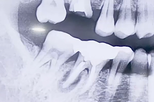 오른쪽 아래 큰 어금니가 굉장히 심하게 붓고 통증이 있는 상태로 내원해 주신 환자분의 사례로, 해당 치아의 흔들림이 심했습니다. 엑스레이를 찍어보니 어금니의 뿌리 중 하나의 주변으로 염증이 생기면서 치아를 단단히 잡아주는 힘이 약해져 흔들리고 통증이 있던 것이었는데요. 때문에 발치 후 임플란트를 시행하기로 하였으나, 발치한 자리 가운데에 식립하기에는 염증으로 약해진 잇몸이 고민스러웠습니다. 때문에 염증을 피해 살짝 옆쪽으로 심고, 염증 부분은 치료한 뒤 뼈이식으로 정리해 드리는 방향으로 치료해 드렸습니다. |